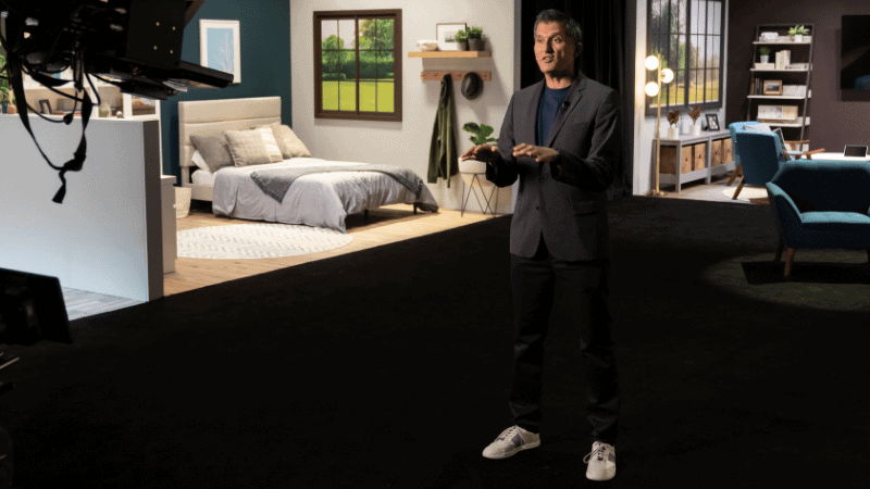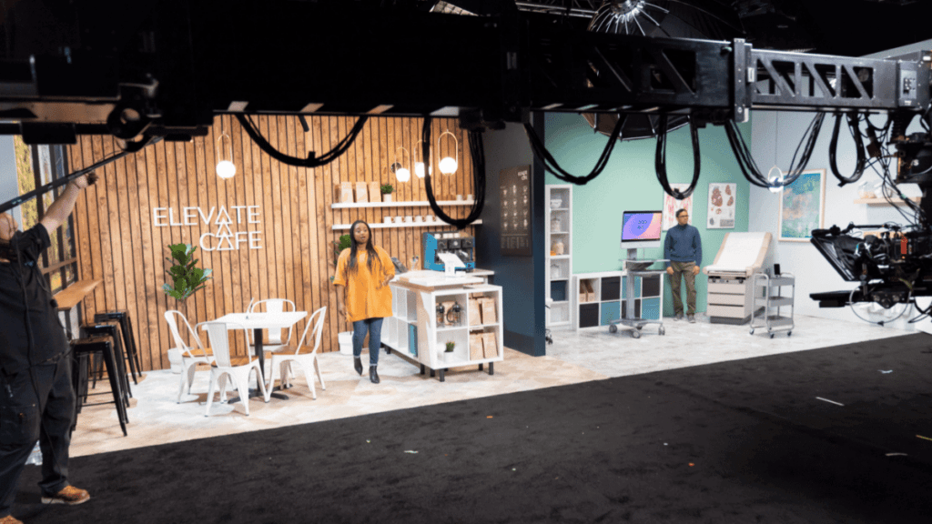 Freeman worked with the Webex team to develop, write, and film the idea: Create real-life scripted vignettes where attendees could view the new products and solutions in everyday situations — these would incorporate all the technical aspects of networking, devices, and demos. With 13 vignettes, and a sound stage that could only host five at a time, we had to build, tear down and rebuild new vignettes and then rearrange vignettes for the different flows while also working closely with content, design, and product.