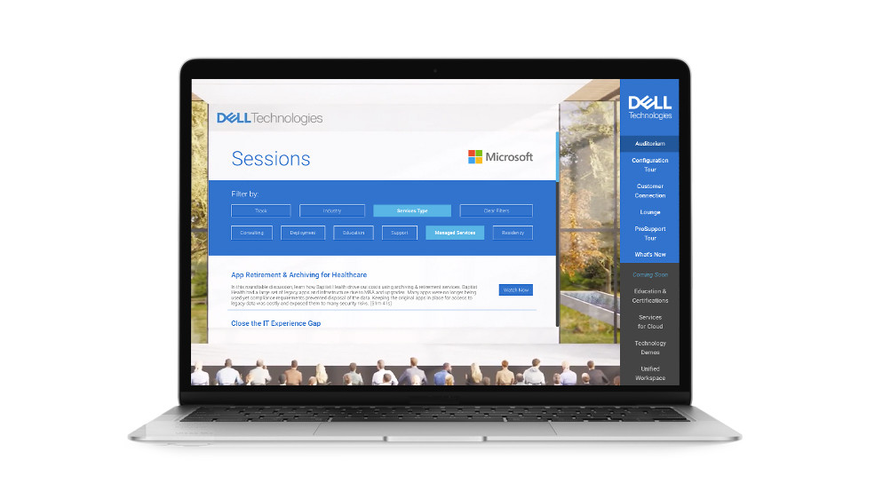 Designed as an evergreen solution, the virtual environment allowed Dell Technologies to continuously gather opportunities. Details from the attendee questionnaire and content engagement data helped provide quality leads for sales teams and show high ROI for sponsors, all while giving users an engaging, easy-to-navigate experience.