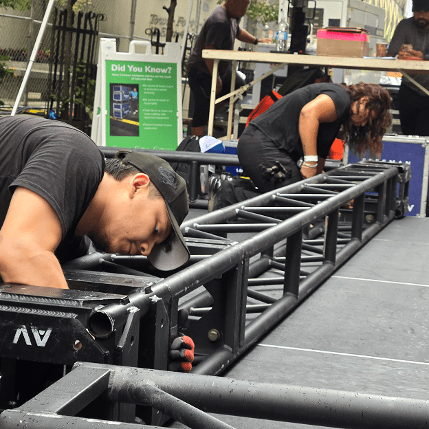 Lights, screens, trusses — we got you. With over 150 years of combined experience, stage rigging keeps every element safe, secure, and ready to perform. As an ETCP-recognized employer, we set the standard for reliable, precision-built rigging that elevates productions and keeps shows running smoothly.