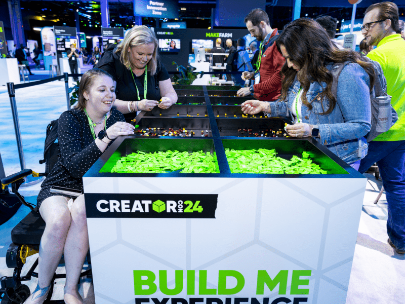 This activation connects the physical build aspect with the overall idea of working together as an industry and community. Another great example of leaning into attendee interests and event messaging.