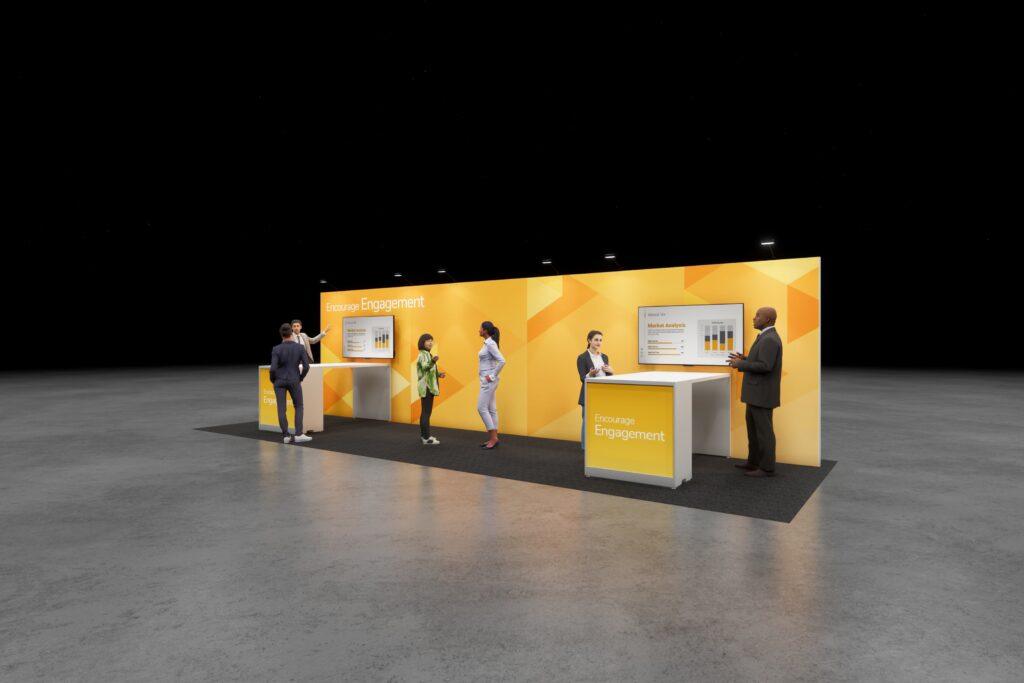 Connect with attendees through live demos and conversation. With plenty of workspace and a digital screen, it’s easy to share your story—physically and virtually.