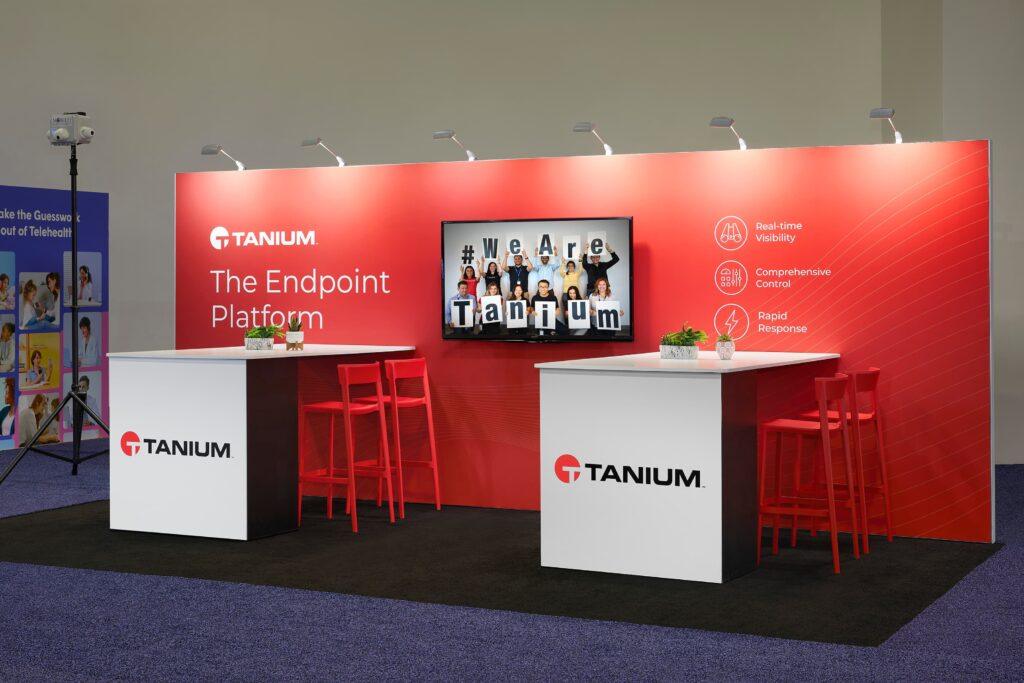 - 8’h Modular backwall structure with fabric graphics. Structural