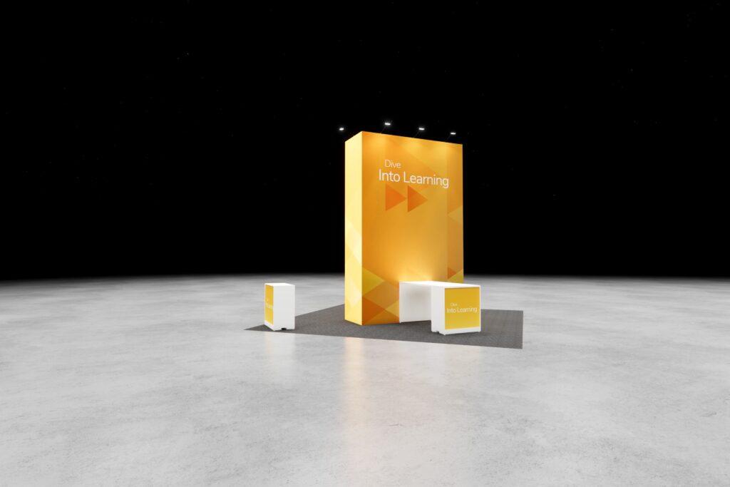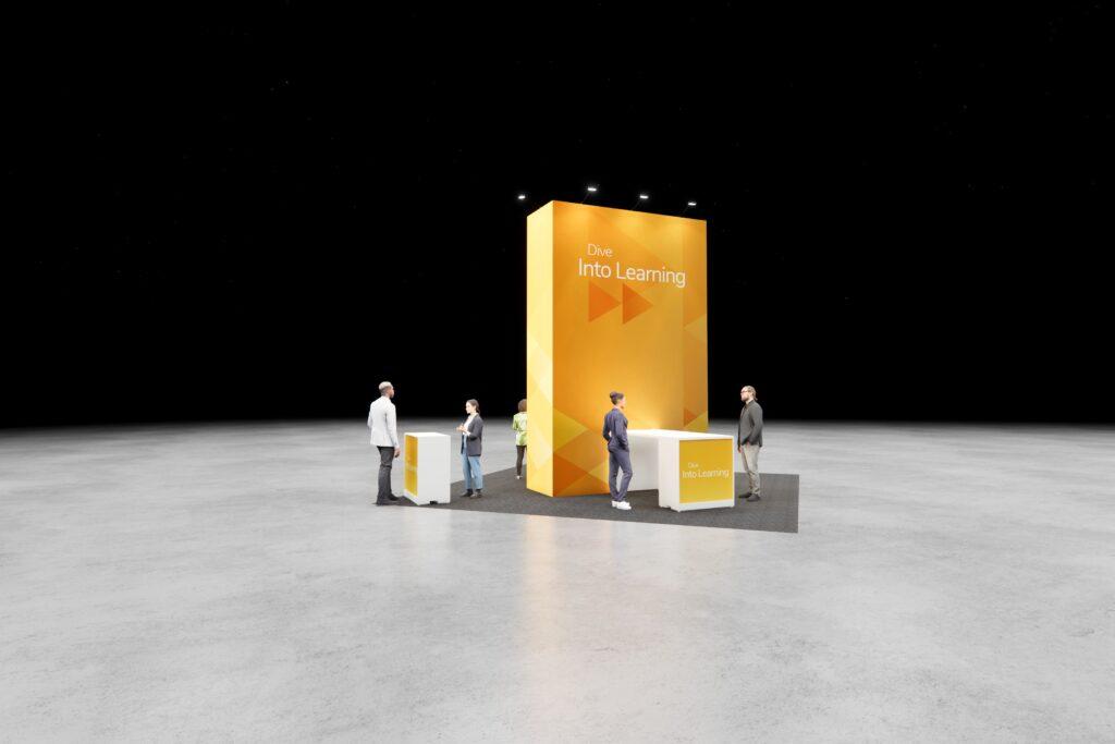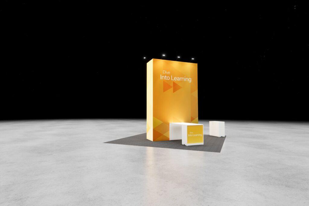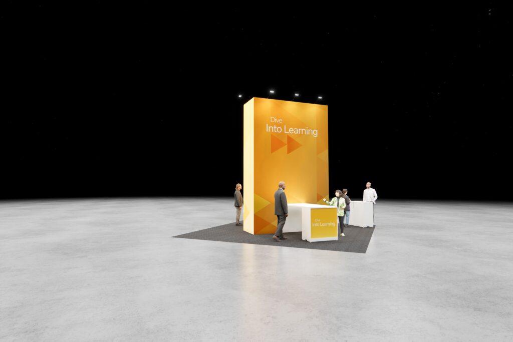 Designed for high-volume engagement, this booth creates space for simultaneous conversations while a bold central display keeps your brand front and center.