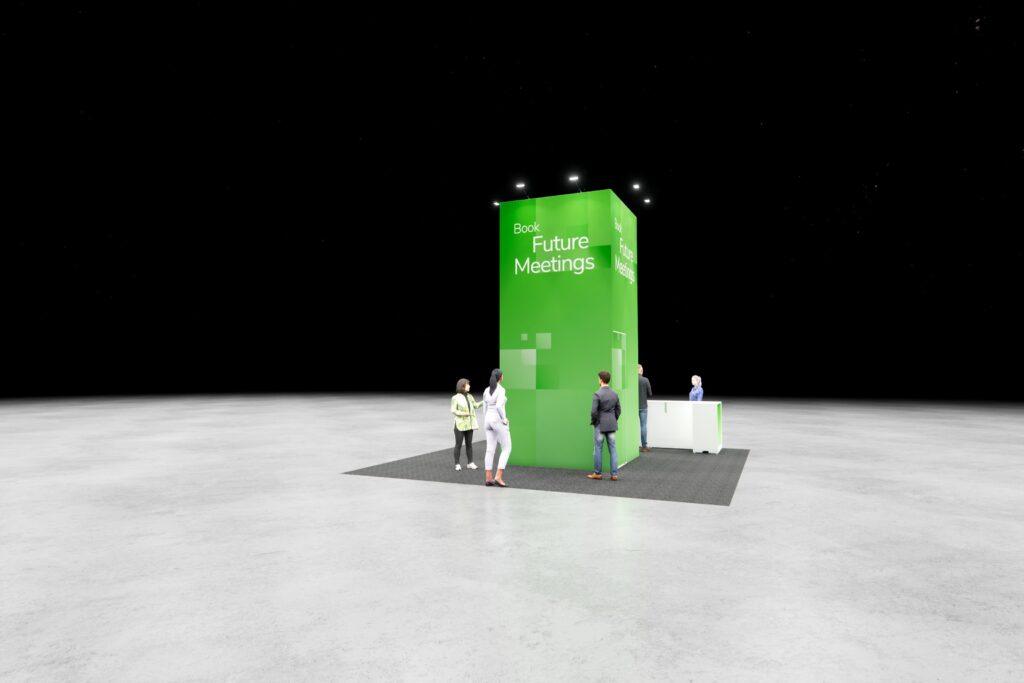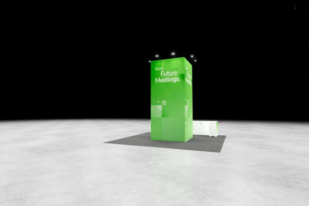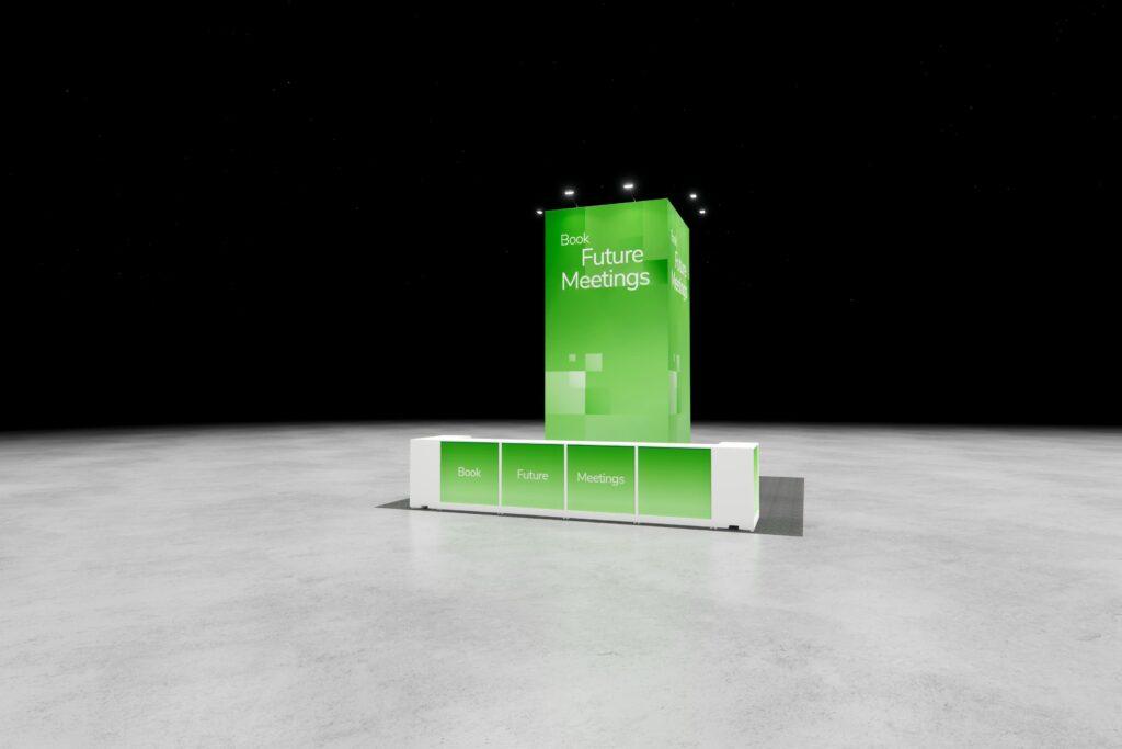 Ample counter space and storage make this layout ideal for one-on-one product demonstrations, while a bold backwall delivers strong brand visibility.
