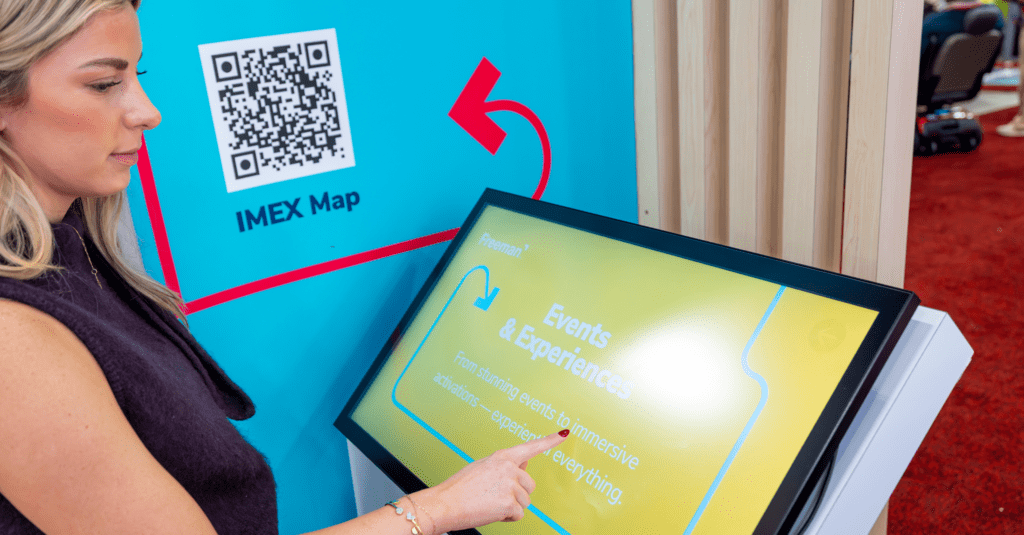 Interactive challenges, guided demos, or short surveys encourage attendees to spend time with your brand. Today’s plug-and-play touchscreens are user-friendly and don’t take up valuable space. Plus, letting attendees explore solutions at their leisure feels less like a sales pitch and more like play.