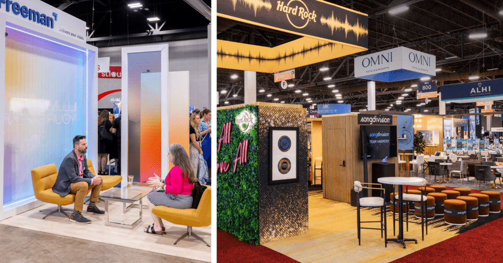 No matter the size, great booths start with a solid foundation. Furniture and flooring do more than fill space — these selections shape how people move, pause, and connect. Smart exhibit design choices help maximize square footage and budget. And they create an environment that works harder for your brand.